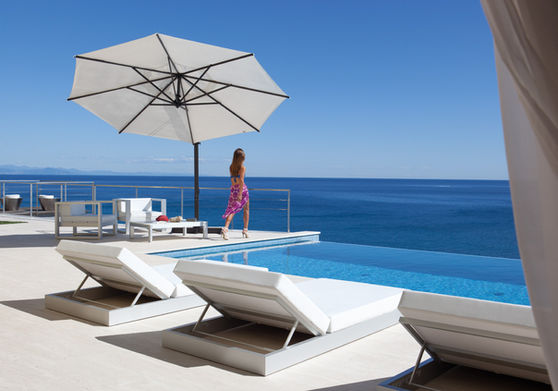 The Rodi Umbrella is an nnovative design that allows the open and tilted parasol to be rotated 360° around its base and is easily opened by a crank handle. A single motion closes the parasol towards the pole, without need to relocate any furniture under it. Ideal for both residential use (villas, private gardens) and commercial use (hotels, restaurants…). Rodi can be supplied with a freestanding base or in-ground mount. All FIM products are designed and made in Italy, using the best materials for outdoor use, in order to guarantee exceptional durability even under the most demanding environmental conditions.